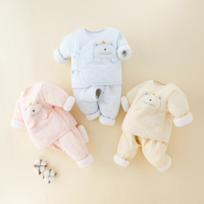 婴儿薄棉套装秋冬季新生儿夹棉无骨分体冬款棉衣初生儿...