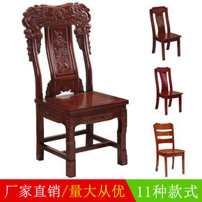 .实木餐椅家用现代中式橡木椅子古典雕花靠背椅餐厅书...