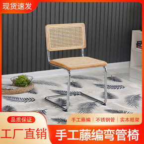 北欧藤编椅子铁艺家用实木靠背椅扶手复古餐椅网红in...