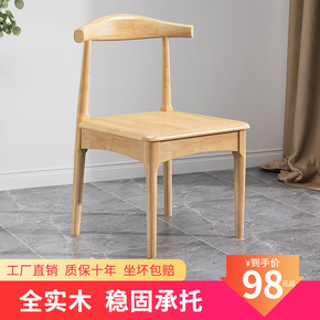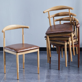 仿实木北欧简约靠背家用电脑书桌牛角椅凳现代饭店餐厅...
