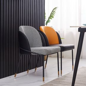 现代轻奢餐椅家用北欧千鸟格靠背椅子咖啡厅简约铁艺餐...