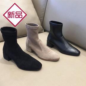 小短靴女2022年新款靴子秋季中跟马丁靴粗跟袜子鞋...