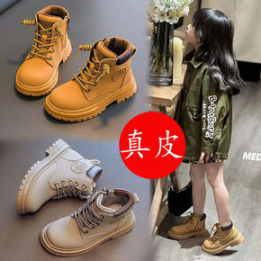 靴子2022年秋季新款真皮儿童马丁靴男童短靴英伦风...