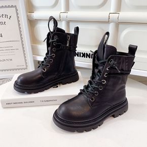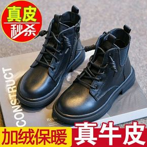 2022儿童真皮马丁靴加绒纯色黑皮鞋英伦风ins女...
