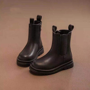2022秋款童鞋韩版牛皮侧拉链男女童皮靴马丁靴休闲...