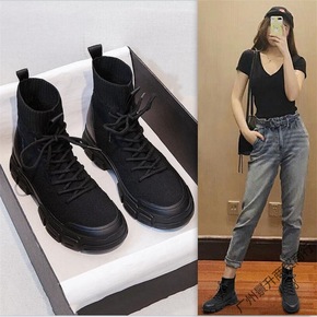 袜子鞋内增高马丁靴子女短靴2022年新款夏春秋单靴...