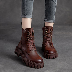 天妮格9孔真皮马丁靴女加绒棉靴娃娃头大头鞋牛皮短靴...