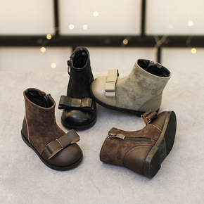 儿童靴女童马丁靴烟筒靴加绒棉靴中筒靴切尔西短靴保暖...