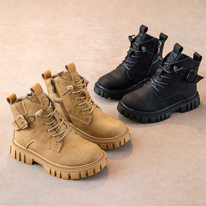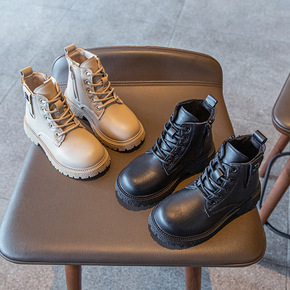 女童靴子2022新款秋季软皮儿童马丁靴女孩短靴男童...