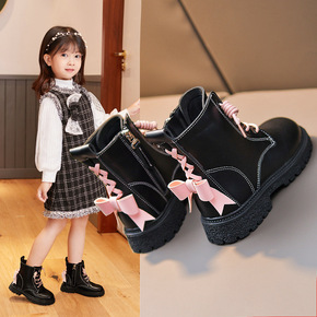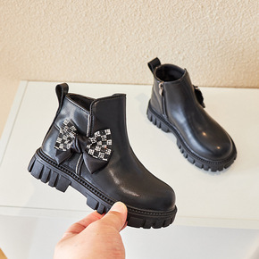 女童时尚水钻蝴蝶结单靴2022秋季新款洋气马丁靴韩...
