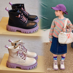 2021秋冬新款韩版百搭童鞋儿童马丁靴女童中帮短靴...