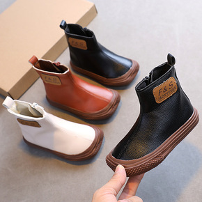 2021秋冬新款小儿童软底靴子男女小童侧拉链马丁靴...