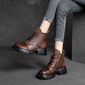 上海杰骤复古高帮马丁靴轻泡鞋底骑士短靴头层牛皮大头...