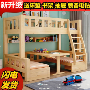 实木儿童上下床高箱床子母床上下铺多功能储物双层床母...