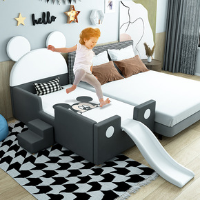 加宽床拼接儿童床大床延边小床男孩女孩实木护栏滑梯宝...
