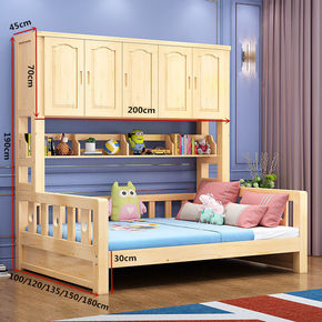 全实木 床柜一体男孩单人床1.2米儿童床衣柜床小户...