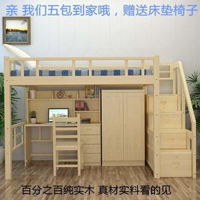 实木松木组合床带书桌衣柜儿童床高架床多功能床上下铺...