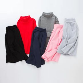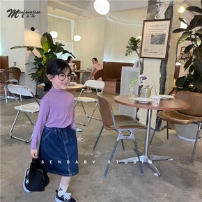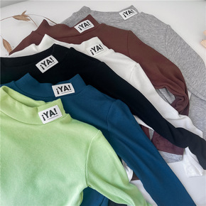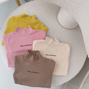 2021秋季新款女童打底衫暖暖棉螺纹半高领女宝木耳...