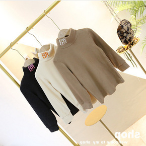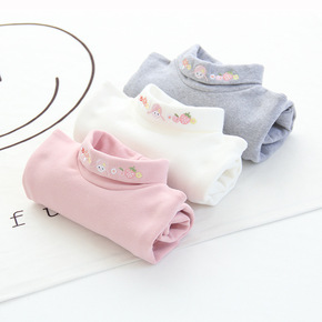 可爱女孩~LM20340梨蜜 刺绣女孩高领棉打底衫...