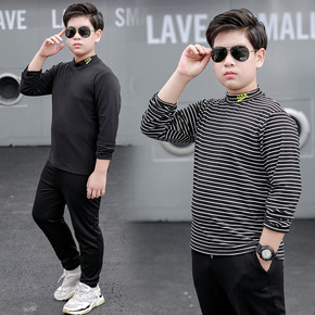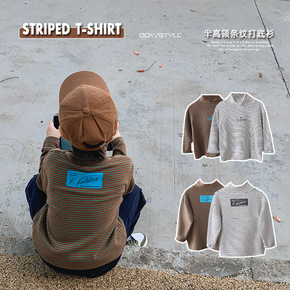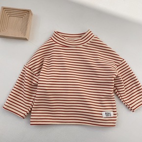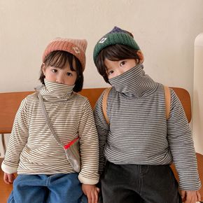 儿童加绒条纹高领打底衫 男童半高领上衣女宝宝加厚保...