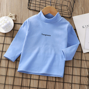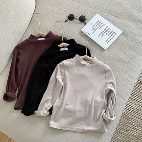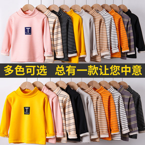 童装男女童半高领加厚打底衫贴标纯色儿童t恤宝宝内搭...