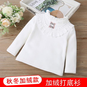 女童加绒打底衫秋冬儿童保暖白色上衣韩版洋气小女孩中...