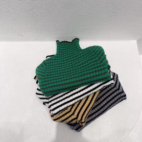 莱抱抱2021冬季新品韩国童装韩版中童高领拼色条纹...