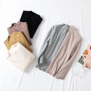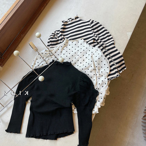 2022春季新款女童花边打底衫儿童柔软韩版长袖木耳...