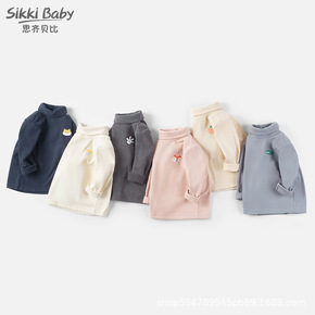 儿童长袖t恤秋季新款德绒套头衫中小童高领打底衣婴幼...
