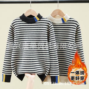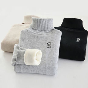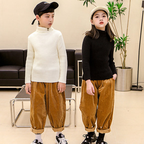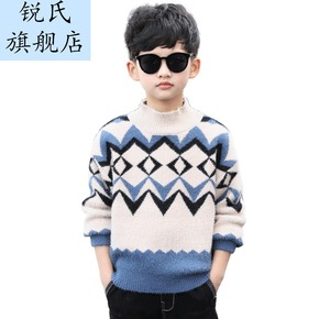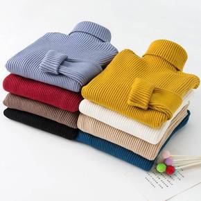 秋冬新款儿童毛衣中领男女童羊毛衫半高领加厚套头抽条...