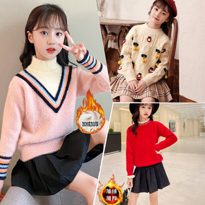 包邮女童秋冬新款水貂绒毛衣2021韩版加厚中大童洋...