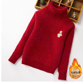 女童高领加绒毛衣秋冬2021新款儿童洋气套头线衣小...