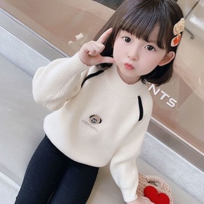 女童绒厚毛衣套头内搭打底衫秋冬新款儿童洋气色针织衫...