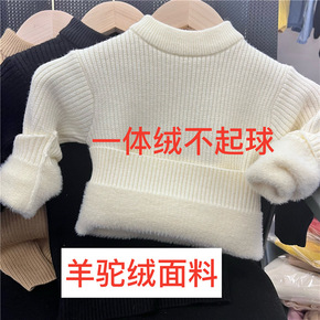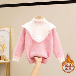 女童毛衣水貂绒2021新款套头秋冬打底衫加绒洋气时...
