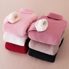 女童毛衣加绒加厚儿童秋冬韩版半高领纯色宝宝套头上衣...