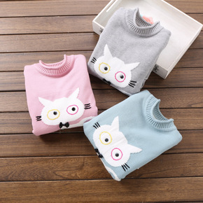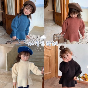 秋冬新款女童韩版毛衣儿童内衣版高领堆堆领泡泡袖针织...