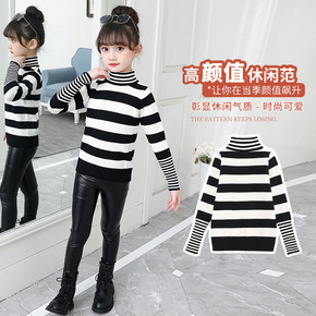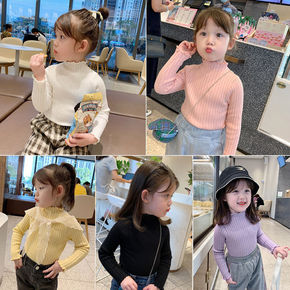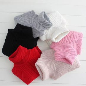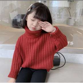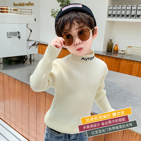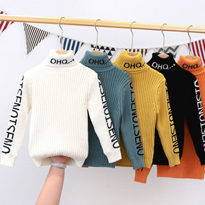 儿童高领翻领套头打底毛衣男童女童秋冬针织线衣中大童...