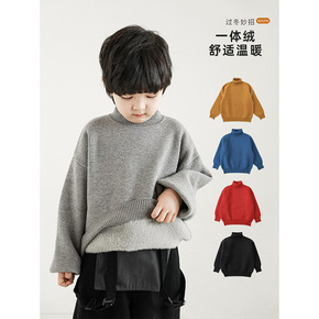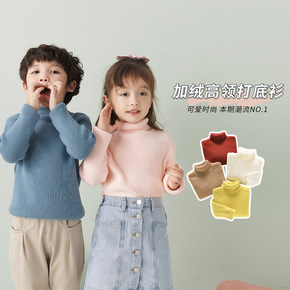 男童高领毛衣加绒加厚小童冬款女童针织衫打底衣儿童毛...