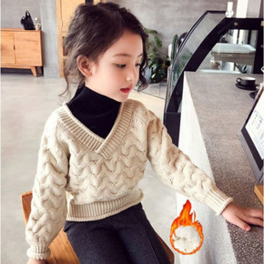 女童加厚毛衣2018麦穗新款仿貂绒时尚针织衫女宝宝...