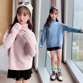 女童2021新款毛衣中长款秋冬装中大童套头加绒加厚...