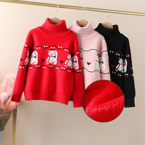 2021冬款圣诞新年儿童装!女童高领一体绒毛衣中童...