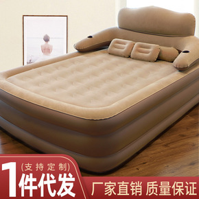 新款内置泵充气植绒床 加厚双人气垫床 便携式户外简...