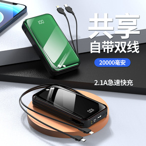 迷你充电宝自带线20000毫安大容量共享移动电源企...