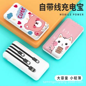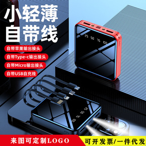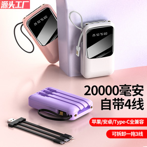 工厂批发新款迷你自带线充电宝 大容量20000毫安...