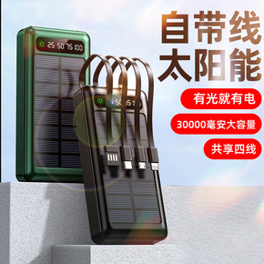 全新升级自带四线太阳能充电宝30000毫安移动电源...