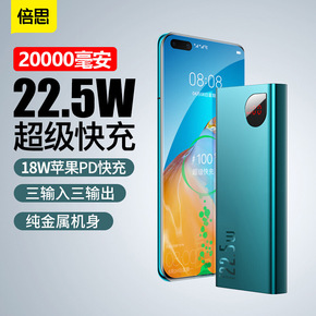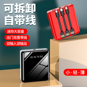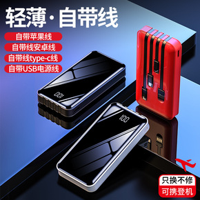 可拆卸自带线充电宝迷你镜面数显20000毫安便携定...