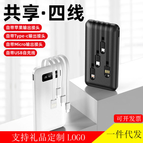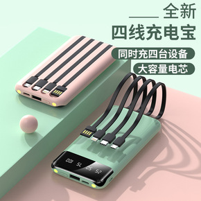 批发新款自带四线充电宝20000毫安超大容量便捷移...