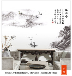 GS8831中国风山水画墙贴自粘卧室客厅贴画电视背...