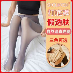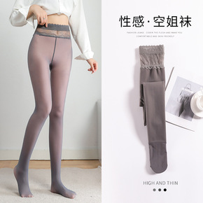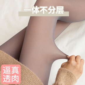 空姐灰光腿女假透肉连裤袜打底裤一体无缝加绒加厚秋冬...
