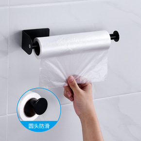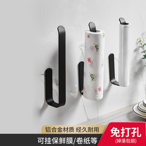 厨房不锈钢纸巾架免打孔保鲜膜挂架家用卷纸架黑色收纳...